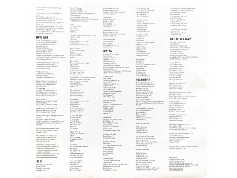 B1 Move Over 2:46Engineer [Additional] – Jake DaviesKeyboards, Programmed By – Matt RoweMixed By – Mark "Spike" Stent*Mixed By [Assistant] – Paul "P-Dub" Walton*Producer – Matt Rowe, Richard StannardProgrammed By [Additional] – Pete DavisRecorded By, Engineer – Adrian BushbyWritten-By – Lane*, Wood*, Spice Girls