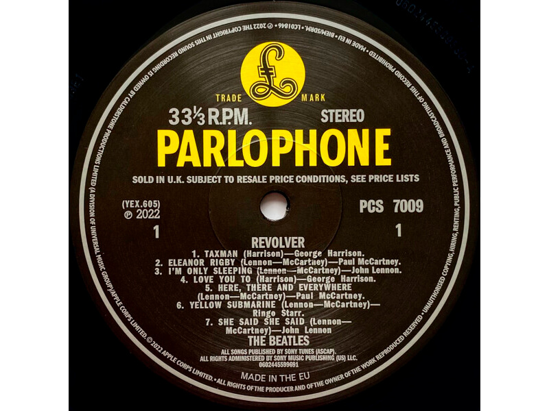 Список композиций:A1 TaxmanLead Vocals – George HarrisonA2 Eleanor RigbyLead Vocals – Paul McCartneyA3 I'm Only SleepingLead Vocals – John LennonA4 Love You ToLead Vocals – George HarrisonA5 Here, There And EverywhereLead Vocals – Paul McCartneyA6 Yellow SubmarineLead Vocals – Ringo StarrA7 She Said She SaidLead Vocals – John LennonB1 Good Day SunshineLead Vocals – Paul McCartneyB2 And Your Bird Can SingLead Vocals – John LennonB3 For No OneLead Vocals – Paul McCartneyB4 Doctor RobertLead Vocals – John LennonB5 I Want To Tell YouLead Vocals – George HarrisonB6 Got To Get You Into My LifeLead Vocals – Paul McCartneyB7 Tomorrow Never KnowsLead Vocals – John Lennon