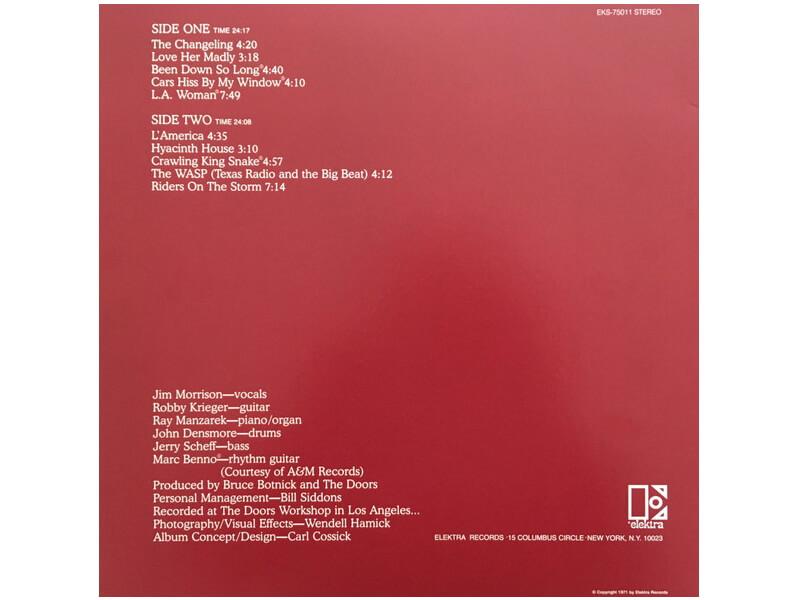 A1 Strange Days 3:05A2 You're Lost Little Girl 3:01A3 Love Me Two Times 3:23A4 Unhappy Girl 2:00A5 Horse Latitudes 1:30A6 Moonlight Drive 3:00B1 People Are Strange 2:10B2 My Eyes Have Seen You 2:22B3 I Can't See Your Face In My Mind 3:18B4 When The Music's Over 11:00