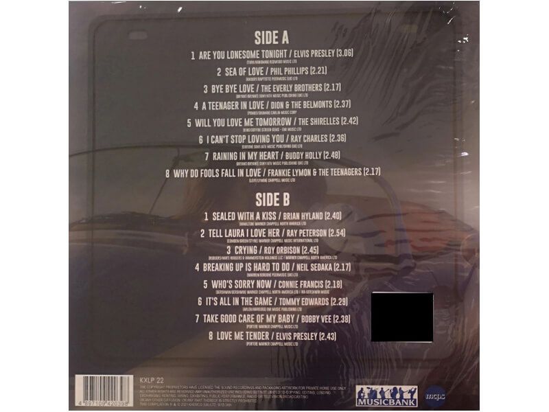 Список композиций:A1 Elvis Presley– Are You Lonsome Tonight 3:06Written-By – Handman*, Turk*A2 Phil Phillips (3)– Sea Of Love 2:21Written-By – Khoury*, Baptiste*A3 The Everly Brothers*– Bye Bye Love 2:17Written-By – Bryant*, Bryant*A4 Dion & The Belmonts– A Teenager In Love 2:37Written-By – Pomus*, Shuman*A5 The Shirelles– Will You Love Me Tomorrow 2:42Written-By – King/Goffin*A6 Ray Charles– I Can't Stop Loving You 2:36Written-By – Gibson*A7 Buddy Holly– Raining In My Heart 2:48Written-By – Bryant*, Bryant*A8 Frankie Lymon & The Teenagers– Why Do Fools Fall In Love 2:17Written-By – Lymon*, Levy*B1 Brian Hyland– Sealed With A Kiss 2:40B2 Ray Peterson– Tell Laura I Love Her 2:54B3 Roy Orbison– Crying 2:54B4 Neil Sedaka– Breaking Up Is Hard To Do 2:17B5 Connie Francis– Who's Sorry Now 2:18B6 Tommy Edwards– It's All In The Game 2:29B7 Bobby Vee– Take Good Care Of My Baby 2:38Written-By – Porter*B8 Elvis Presley– Love Me Tender 2:43Written-By – Vera Matson