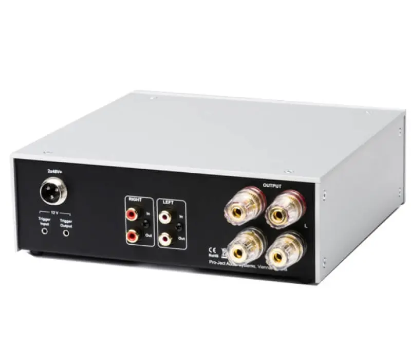 Приятным сюрпризом, повышающим функциональность Pro-Ject Amp Box DS2, является наличие унифицированного триггерного вх/входа, позволяющего пользователю осуществлять (включение/отключение) внешних совместимых устройств. В то же время, к электросети, усилитель подключается через БП внешнего типа, выдающий - 48V при токе 2,5 Ам.