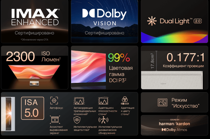 Специально разработанная для ультракороткофокусных проекторов (UST) Технология интеллектуальной адаптации экрана ISA 5.0 Самая интеллектуальная система адаптации