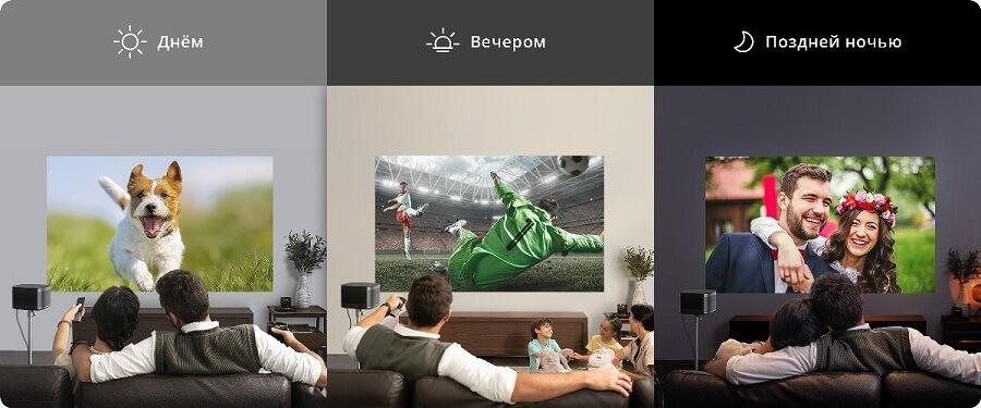 Технология сверхъяркой проекции затмевает конкурентов. Больше не нужно искать самое тёмное место в квартире — яркость Horizon составляет 2200 лм. Он обеспечивает стабильную передачу ярких цветов и сверхчеткое изображение даже при ярком освещении.