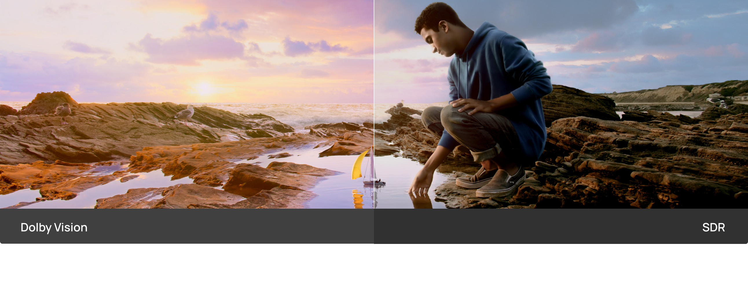 Dolby Vision делает светлые участки светлых участков ярче до 40 раз, а темные участки — до 10 раз сильнее, чем изображение стандартного качества. Все, что вы смотрите, действительно оживет!