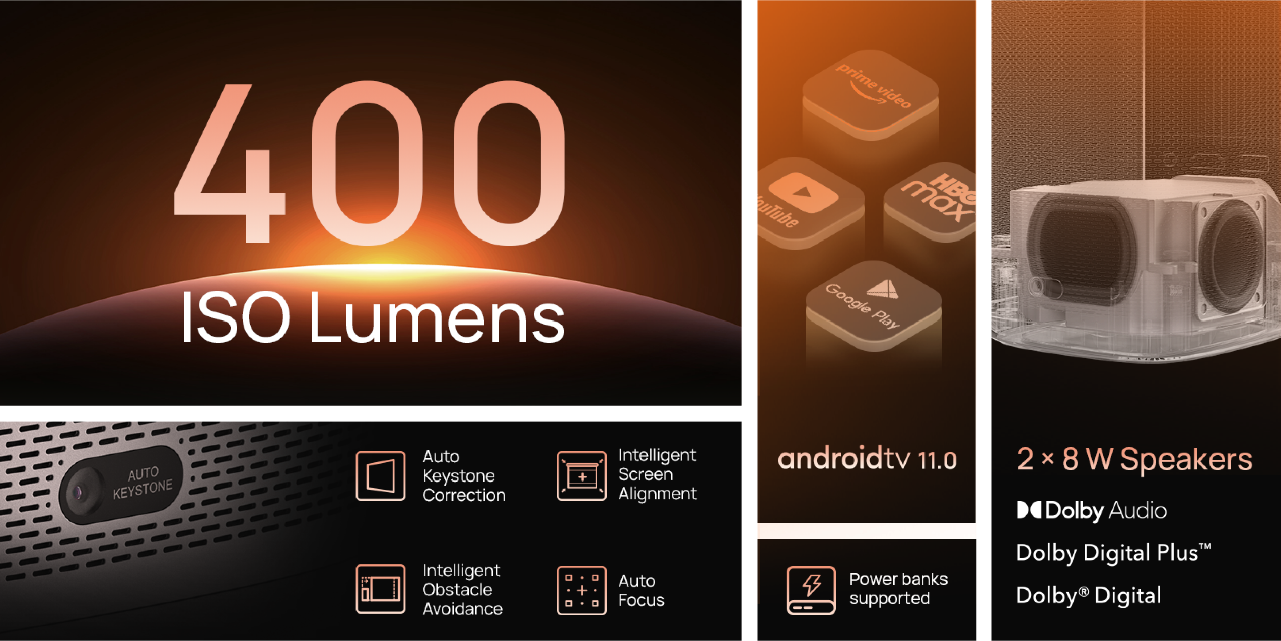 - Динамики мощностью 8 Вт с Dolby Audio: встроенные в MoGo 2 двойные динамики мощностью 8 Вт с Dolby Audio обеспечивают впечатляющий звук, помогая вам погрузиться в любимые фильмы, музыку и многое другое!