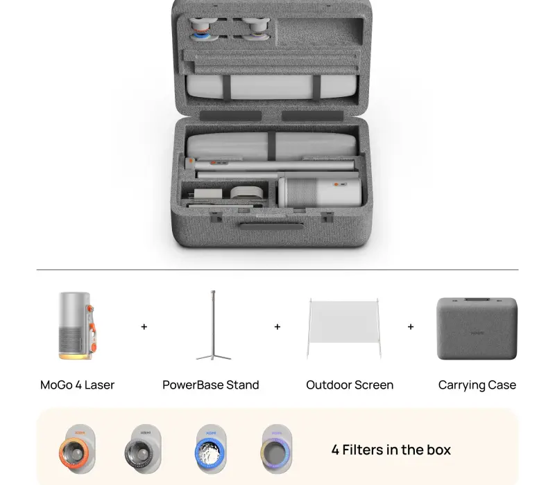 XGIMI MoGo 4 Laser весит всего 1,32 кг/2,9 фунта и имеет размер примерно с кофейную чашку. Он разработан для портативности без ущерба для функциональности. Он превращает любое пространство в персональный кинотеатр, будь то проецирование видеоблогов о путешествиях на стену палатки под звёздами или трансляция любимого сериала Netflix в спальне.