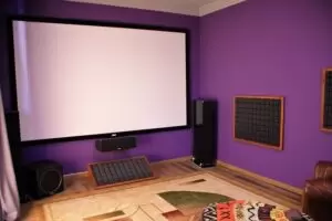 В продолжение темы звукового оснащения – вы можете заметить серые поролоновые накладки – так называемые акустические и басовые ловушки, которые специально сконфигурированы специалистами Kinodrive.kz и размещены строго в определенных местах комнаты. С главной целью – сделать её акустически нейтральной, т.е. исключить отражения звука (эхо). Подобное акустическое оформление позволяет серьезной акустике Hi-Fi класса (такой , как Polk RTi, разумеется) – раскрыть свой богатый потенциал. А значит – УСИЛИТЬ и без того сногсшибательный эффект погружения в сюжет на экране!